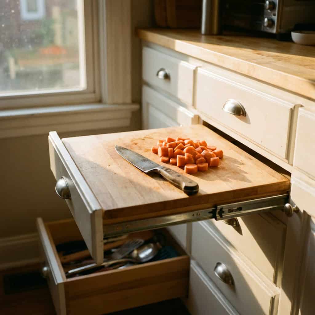 These were boards that slid out from the cabinetry to give you instant extra workspace.