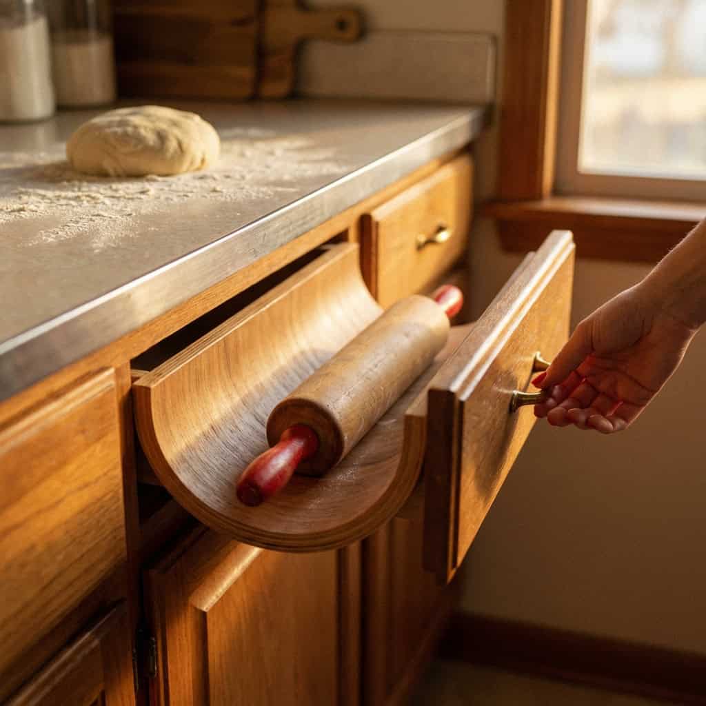 You might find a shallow, curved drawer designed perfectly to cradle a rolling pin.