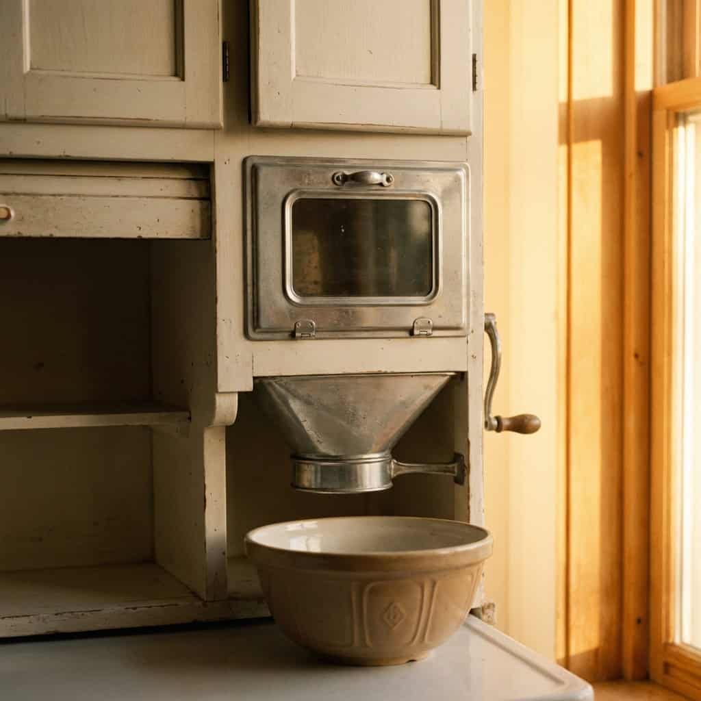Integrated directly into the cabinetry, these sifters allowed you to sift flour directly into a bowl without extra equipment.