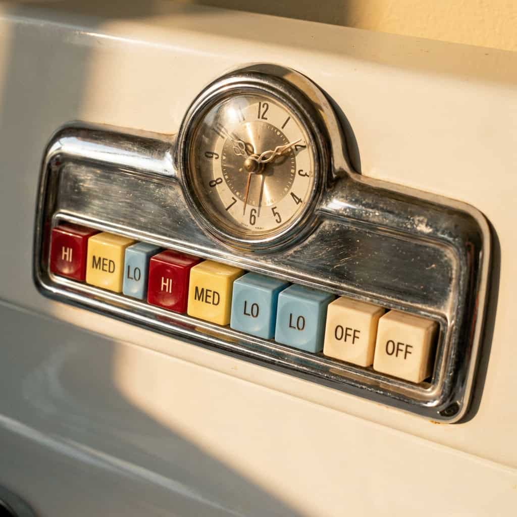 Electric ranges appeared with rows of push-buttons to control the heat, offering a streamlined, futuristic look.